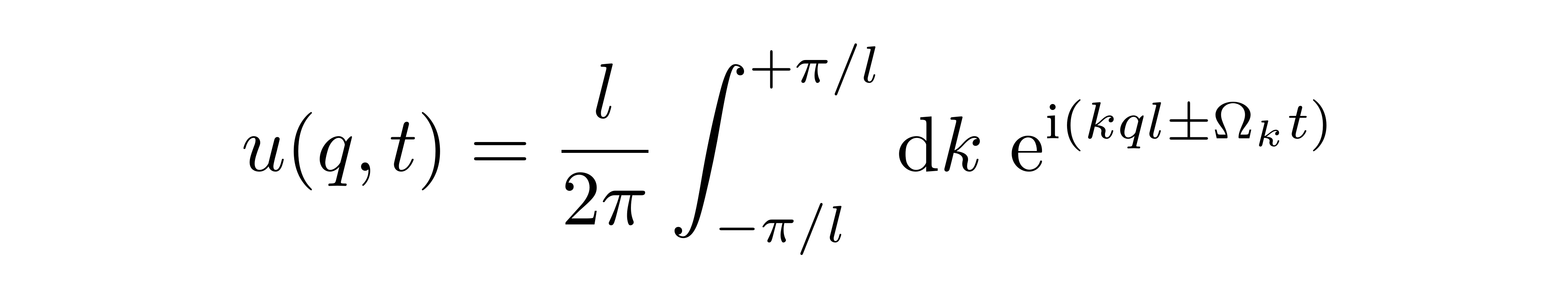 将格点傅里叶展开代入运动方程中,不难发现傅里叶变换将谐振子链的集体振荡分解为了若干个自由振荡模式。其中每个自由振荡模式将满足一个经典谐振子方程,对应振荡频率