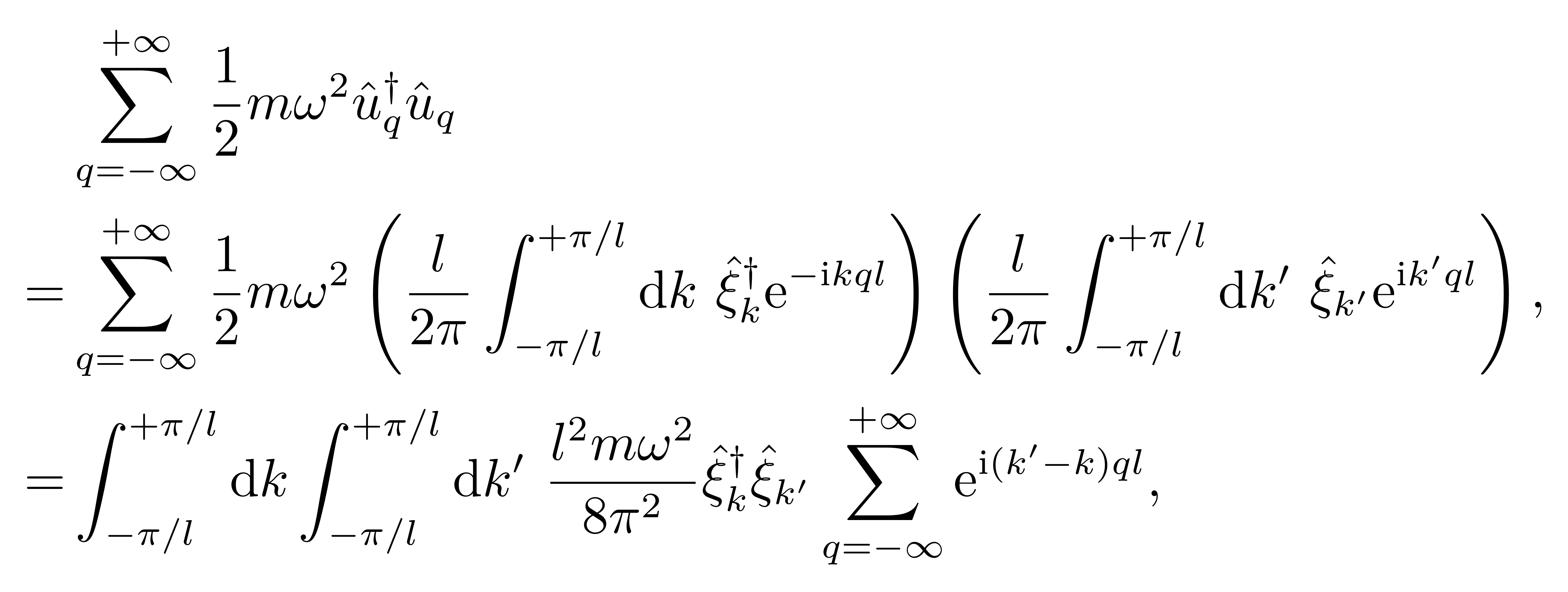 事实上,利用傅里叶展开的形式不难验证其正确性。于是,动能项可以表达为