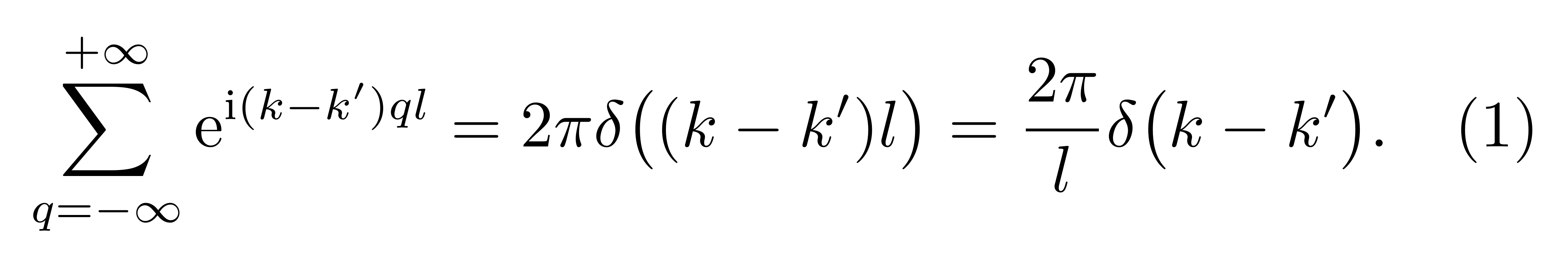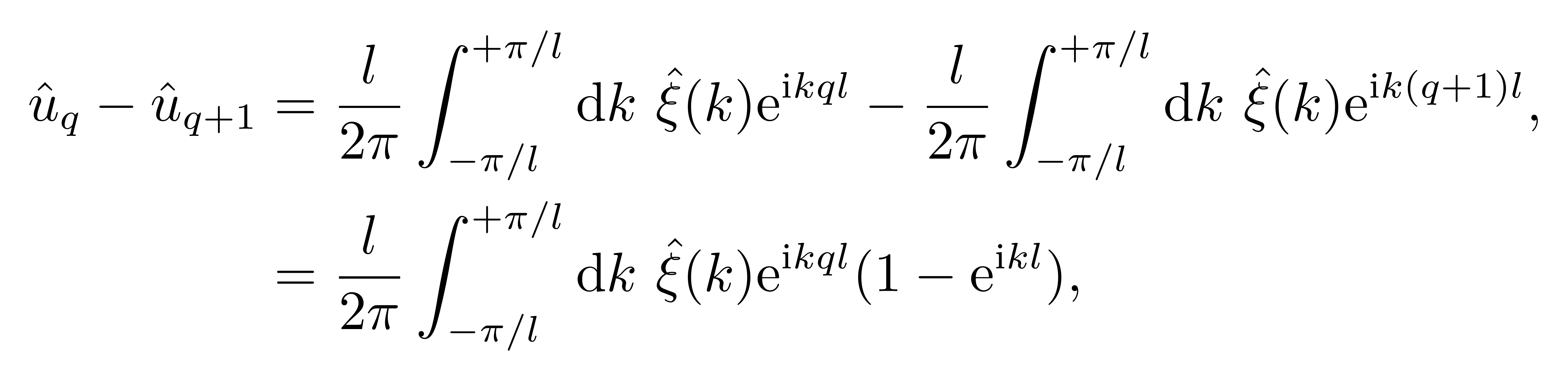 称之为格点傅里叶变换。值得注意的是,在格点傅里叶变换中,积分区域并不能取到整个实轴,而是被固定在一个有限长度的区间内。这是因为当 q 取为整数,而两个参数 k 和 k' 的取值满足