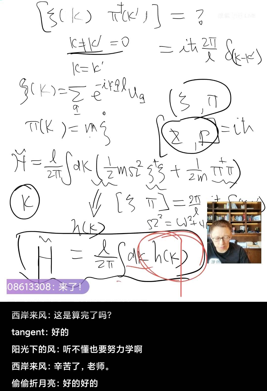 ![]() (张朝阳推导一维谐振子链的哈密顿量算符)