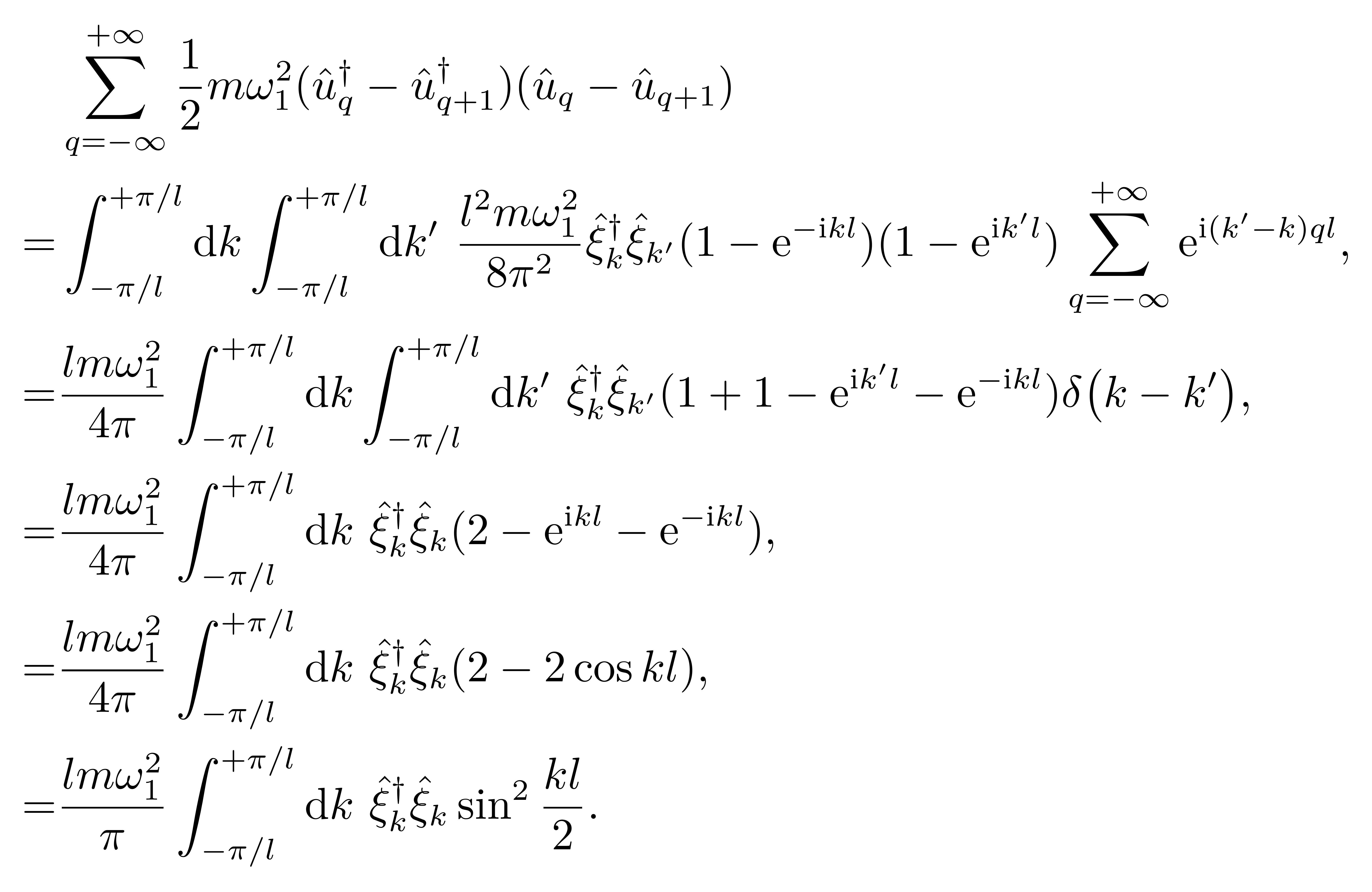 进行对比与区分。从整个链条的角度,相邻谐振子间的作用是相互的,它们之间只贡献一个相应的势能,不应该重复计算。作量子化时,需要将对应的自由度取为算符