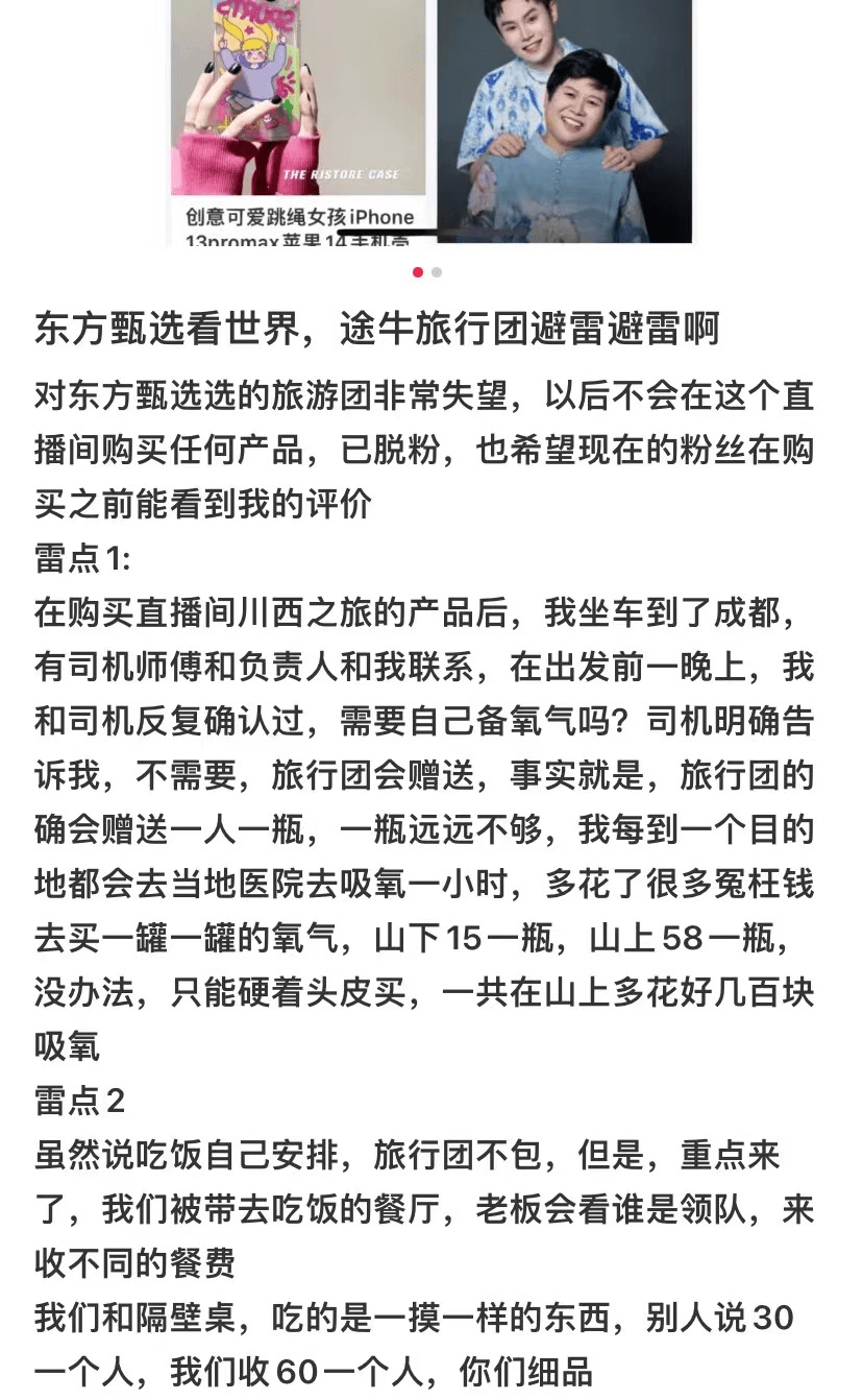直播电商频惹争议,用户发帖劝退东方甄选旅游团