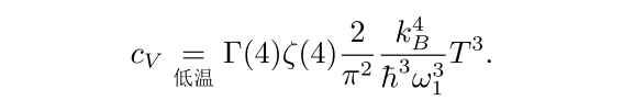 此即固体比热的德拜模型,它可以视为爱因斯坦模型的细化,解决了爱因斯坦模型在低温极限下的缺陷。在中间区域,由于积分很复杂,并没有一个解析的结果。
