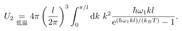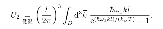 另一方面,可以考虑低温极限(T → 0)。此时,观察 U2 中的积分函数,在温度很低时