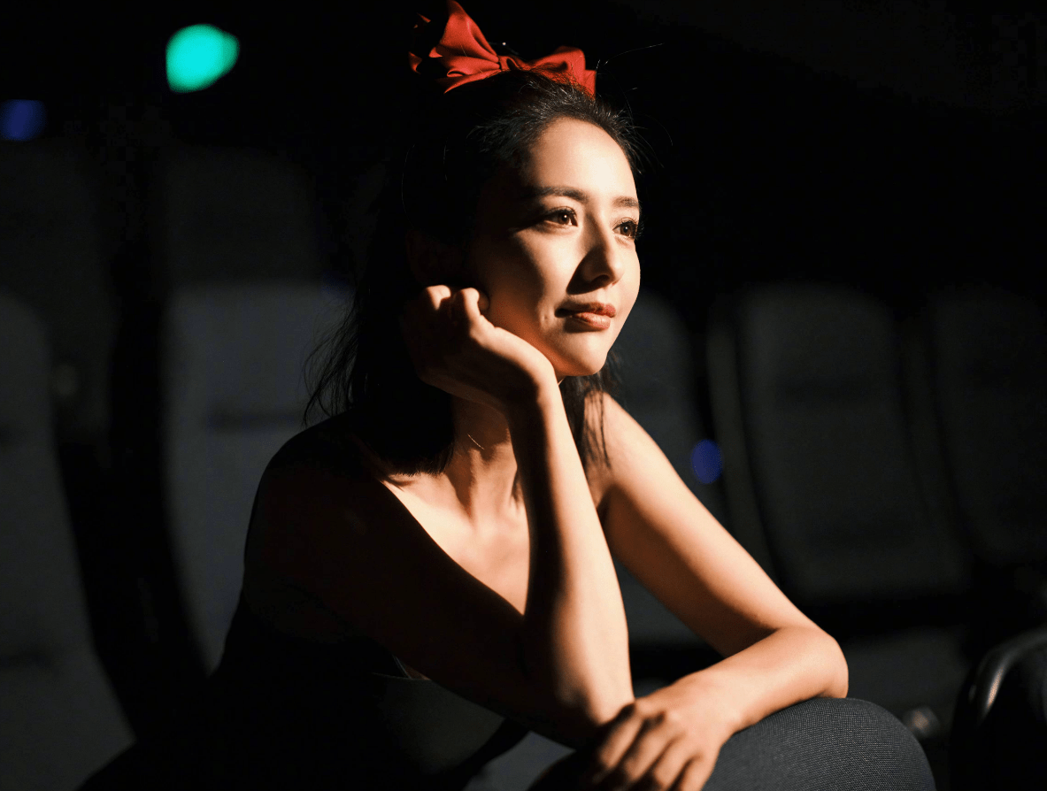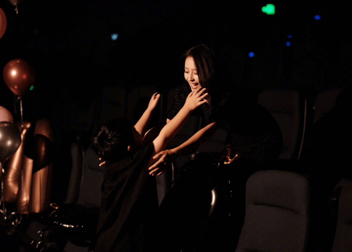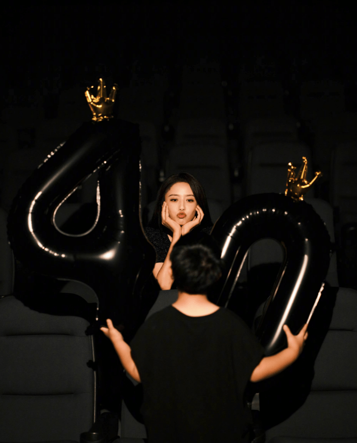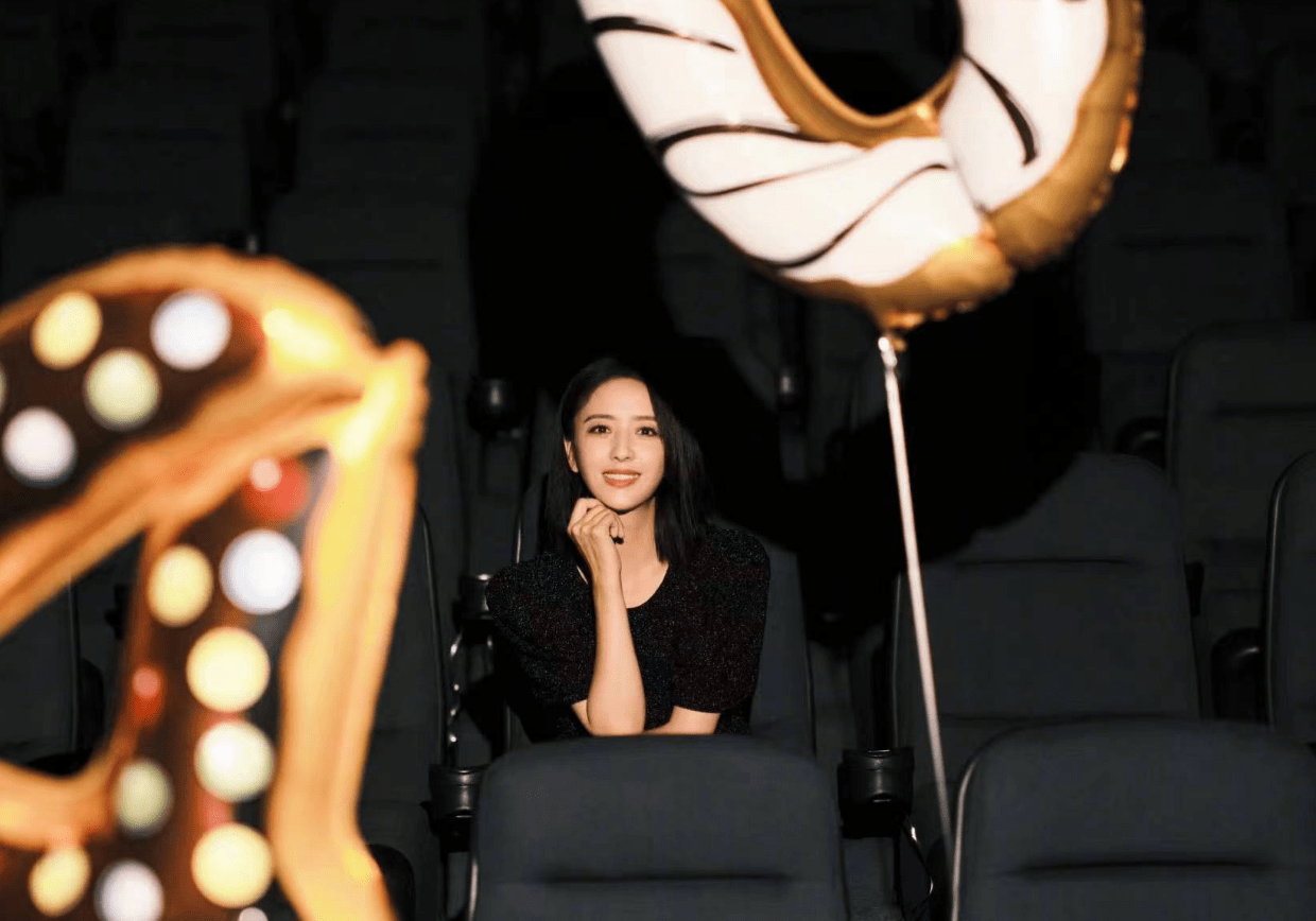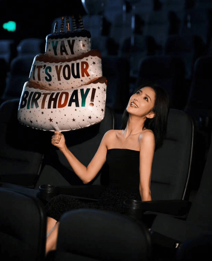 配上柔顺的锁骨发,整个人显得女神范十足,坐在电影院中,看着40岁的气球王冠投影,真的是仪式感满满。