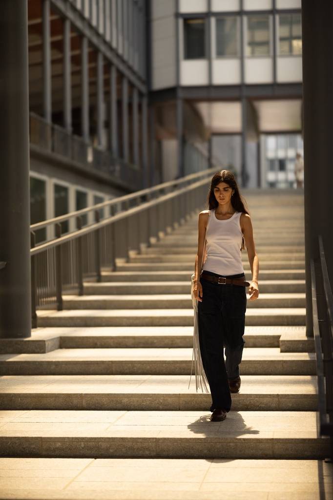 刘雯身穿无袖背心的样子很是干练帅气,时尚与随性兼备。