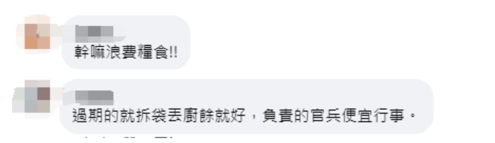 另据中时新闻网报道,该媒体记者当天赶往现场查看,确认约10余袋都是装满过期军用口粮,且处理方式只拆开外包装,并没将小包装里头的饼干、果汁等食用内容物另做厨余处理,于是通报“澎湖防卫指挥部”政战主任许力仁前去确认。许力仁则以另有公事为由称会派人前去查看,但到现场5分钟的车程,直到垃圾车前来清运走,足足有半小时以上,还是不见台军方人影出现。