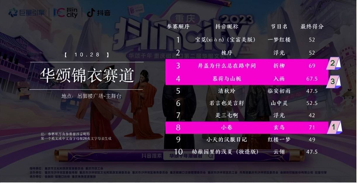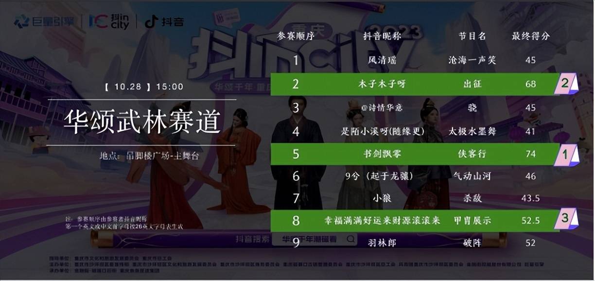 现场演绎后,经分数统计各赛道3强选手脱颖而出,将在29日晚参与国风嘉年华十二强最终表演,争夺赛道星秀。