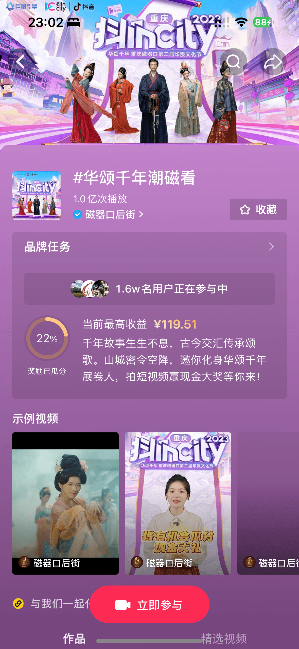 除了线下体验环节,10月25日—11月24日,由磁器口后街主办发起的#华颂千年潮磁看 抖音挑战赛也同步上线,市民游客和各位同袍也可以通过短视频记录,在线上秀出个人国风才艺,晒出磁器口国风美景,抓拍现场的国风网红达人及同袍,深度玩转国风潮流。