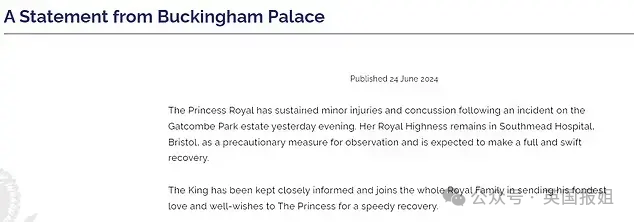 “安妮公主身体状况良好,恢复也很好,预计未来会全面康复。”