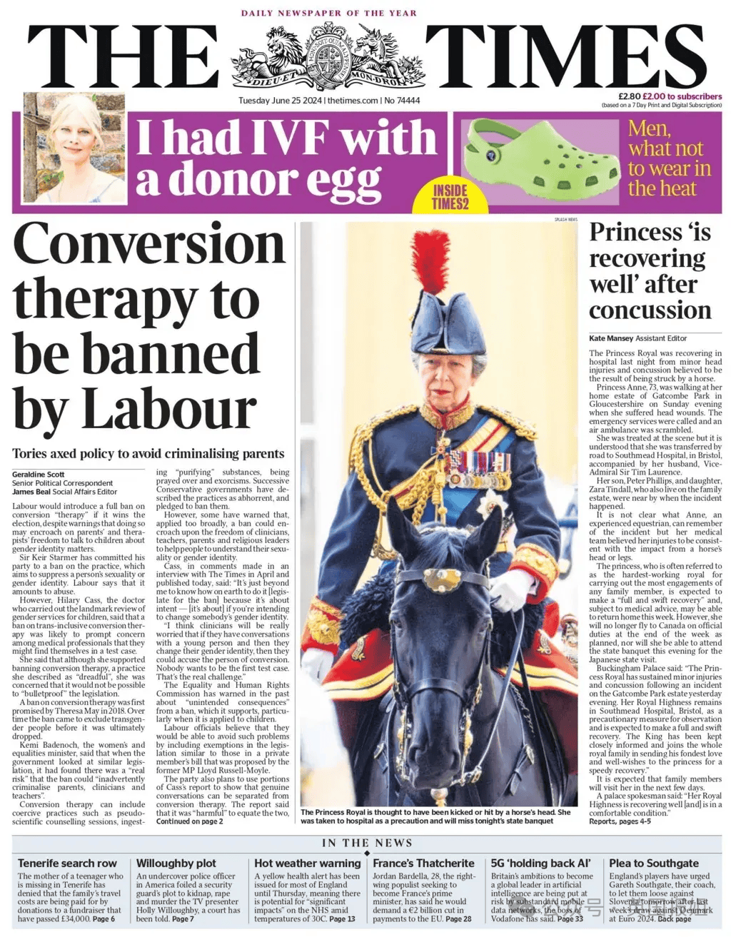 《安妮公主因“马事故”入院治疗》
