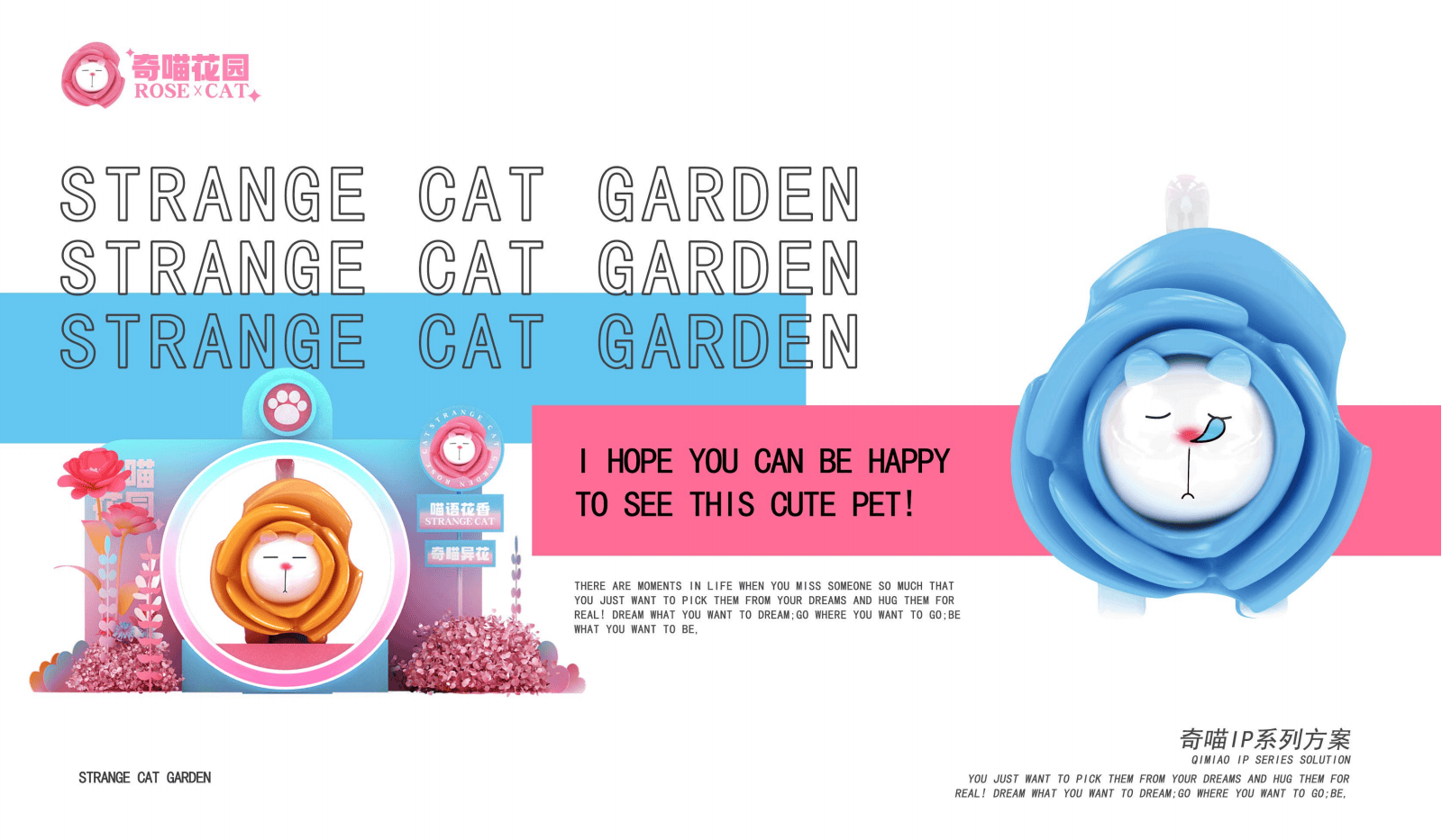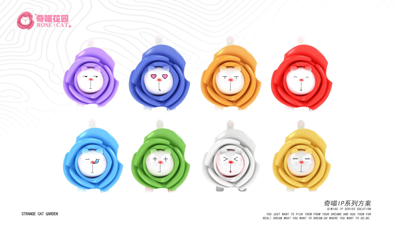 - 奇喵 IP 形象塑造:奇喵 IP 以一只独特的猫为核心,它具有潮流发型、俏皮猫步和微胖身材等显著特点。其与玫瑰花紧密相连,当肥猫遇见玫瑰花,二者相互交融,玫瑰可能变得慵懒,肥猫也可能变得浪漫,这种奇妙的组合为整个 IP 增添了独特的魅力与奇幻色彩,成为整个方案的创意基石。