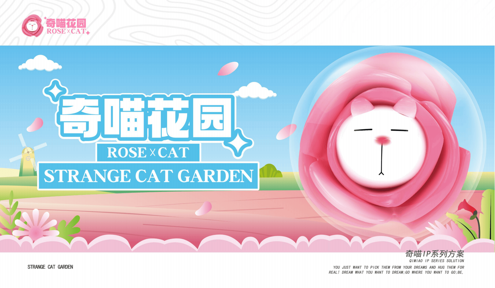 - 玻璃贴画面:利用玻璃贴展示丰富多样的奇喵花园相关画面,包括奇喵的各种姿态、与玫瑰的互动场景等,进一步强化主题形象,让人们在不同角度都能感受到奇喵花园的独特魅力,丰富了场景的视觉呈现形式。